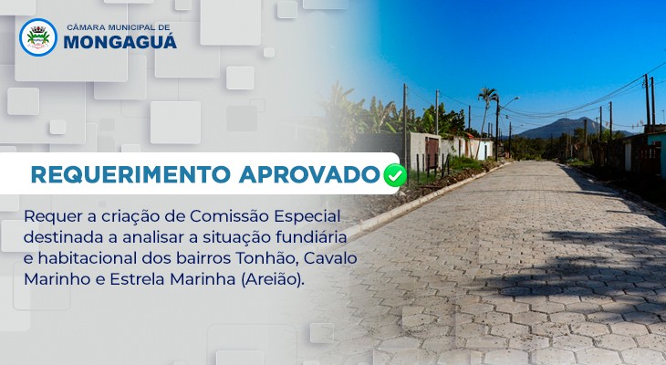 A Câmara Municipal aprovou o Requerimento nº 248/2025, de autoria do vereador Dr. Edilson (PP), para criar uma Comissão Especial que analisa a situação fundiária e habitacional dos bairros Balneário Tonhão, Cavalo Marinho e Estrela Marinha (Areião).