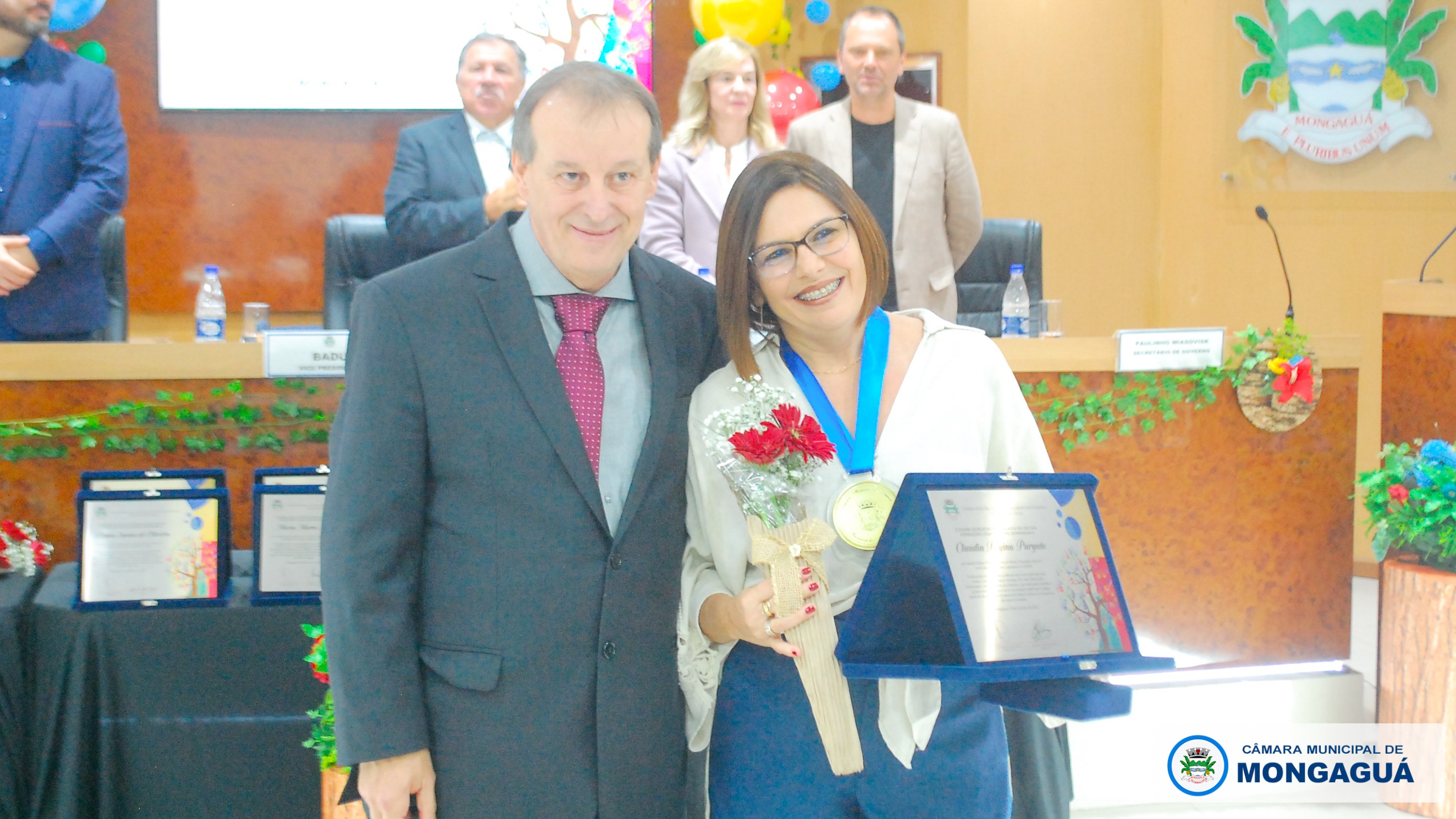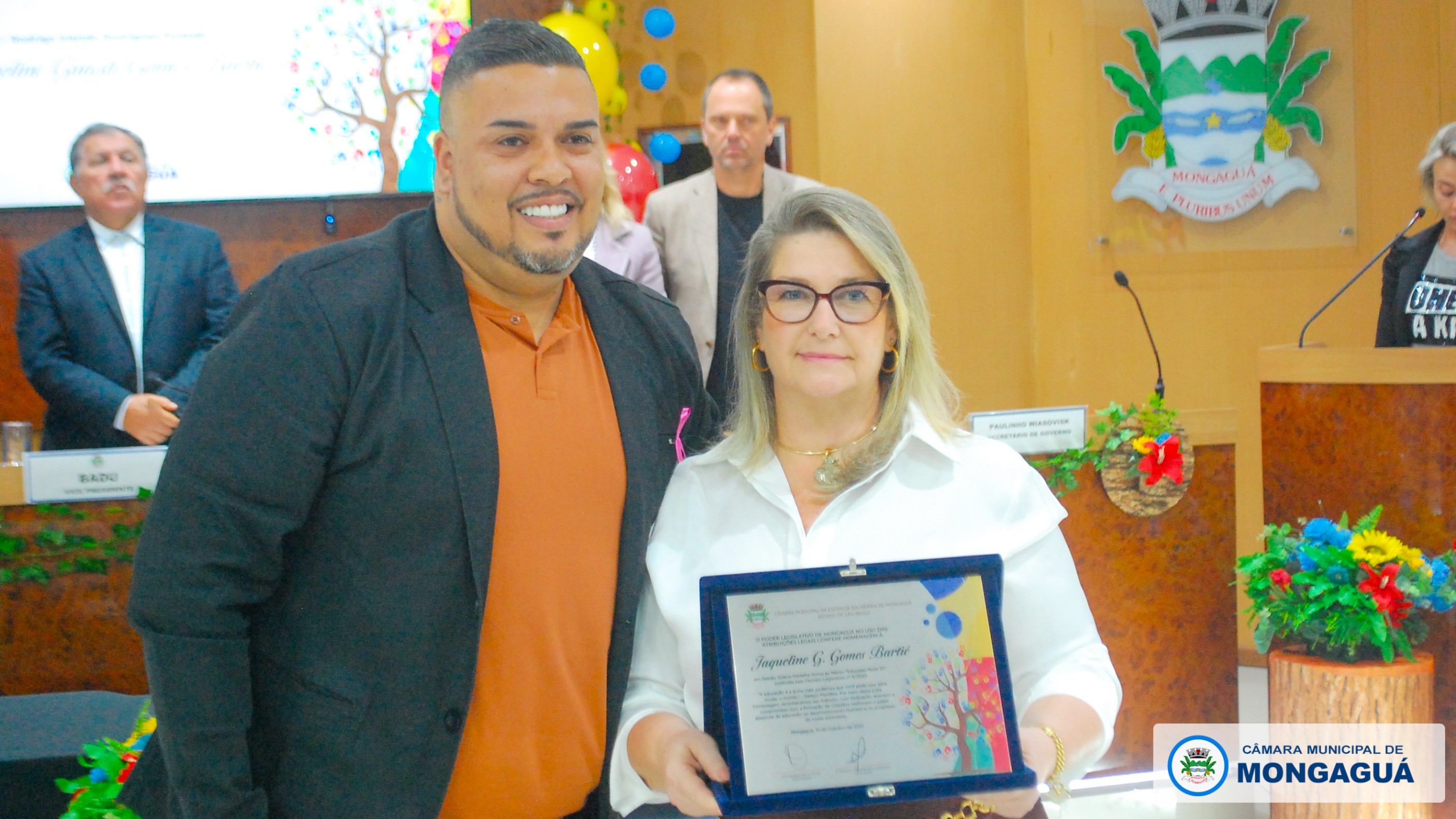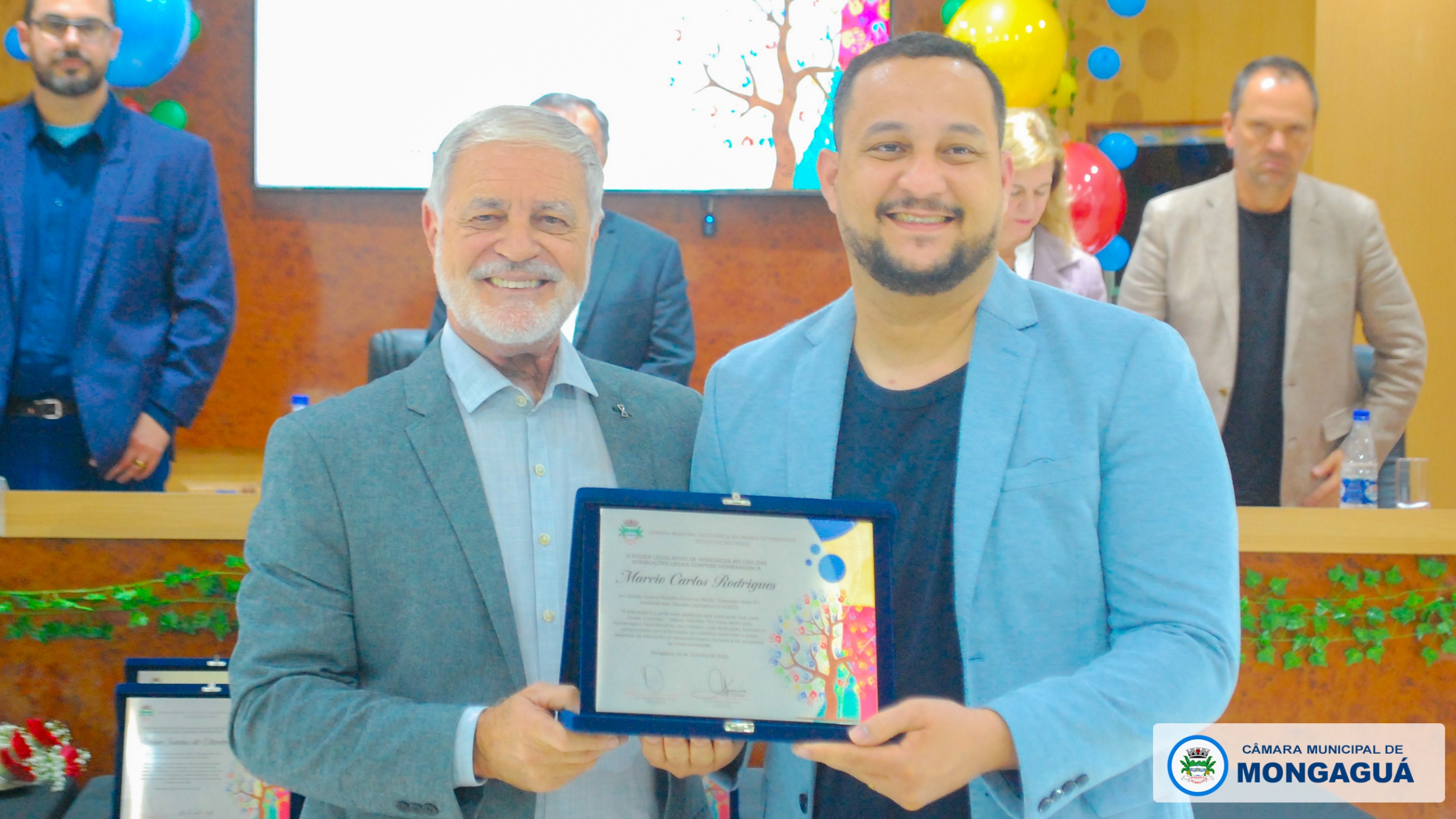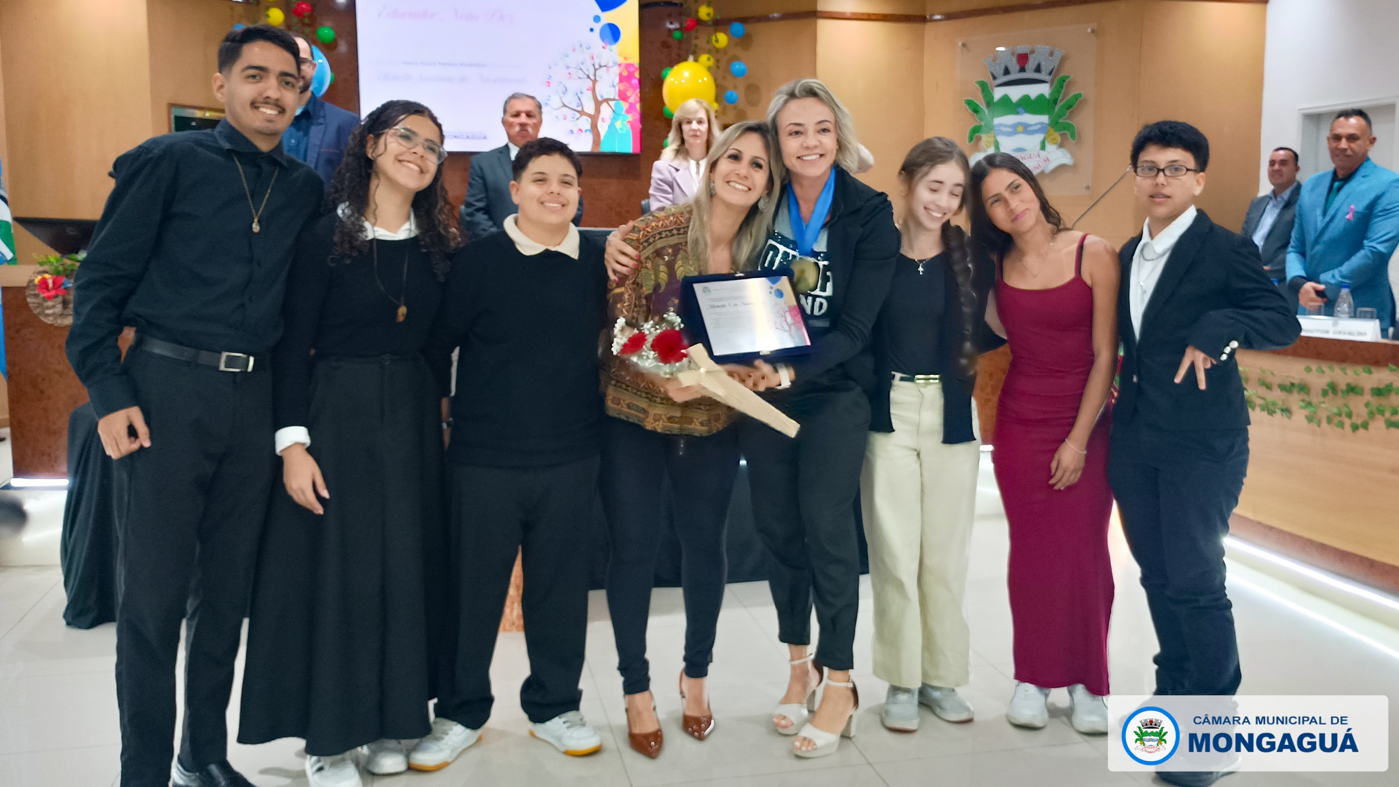 Durante a solenidade, vereadores homenagearam educadores que, com dedicação e compromisso, contribuem de forma exemplar para o desenvolvimento do ensino em Mongaguá. Cada parlamentar indicou um profissional, reconhecendo publicamente sua trajetória e contribuição à comunidade escolar.