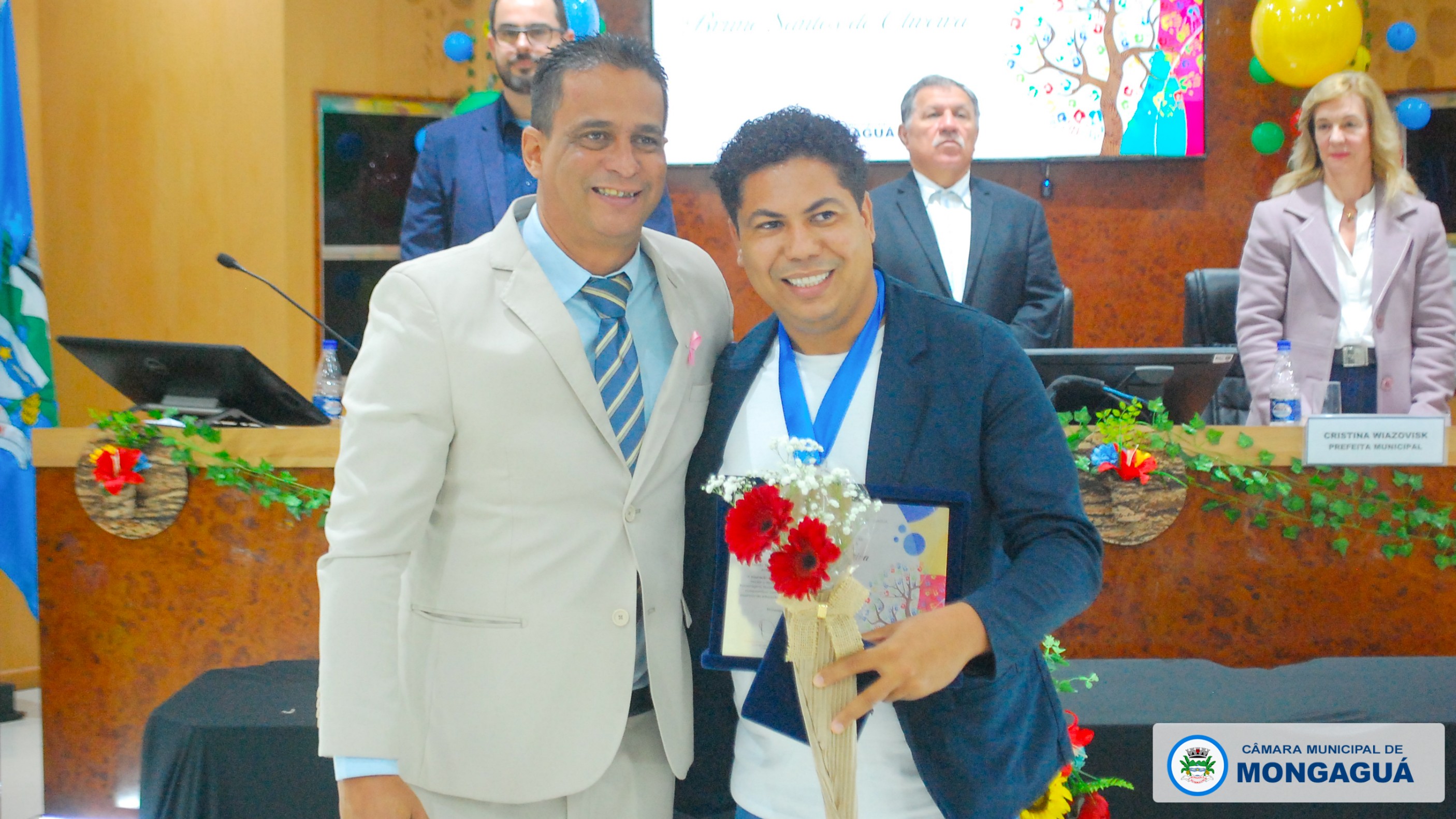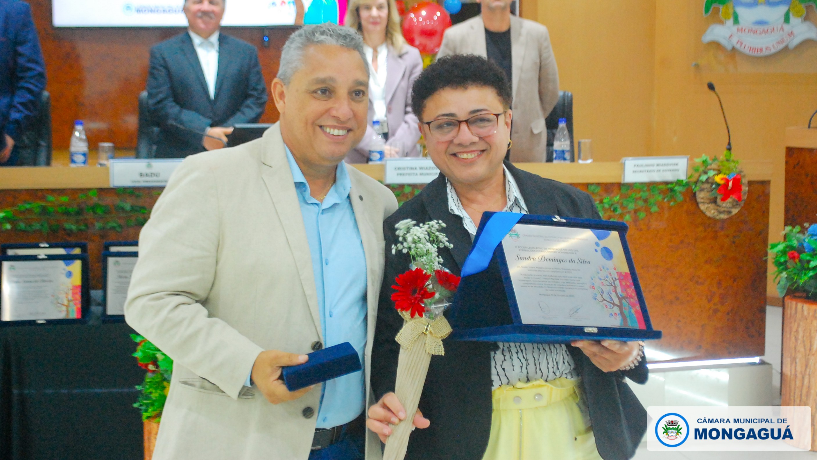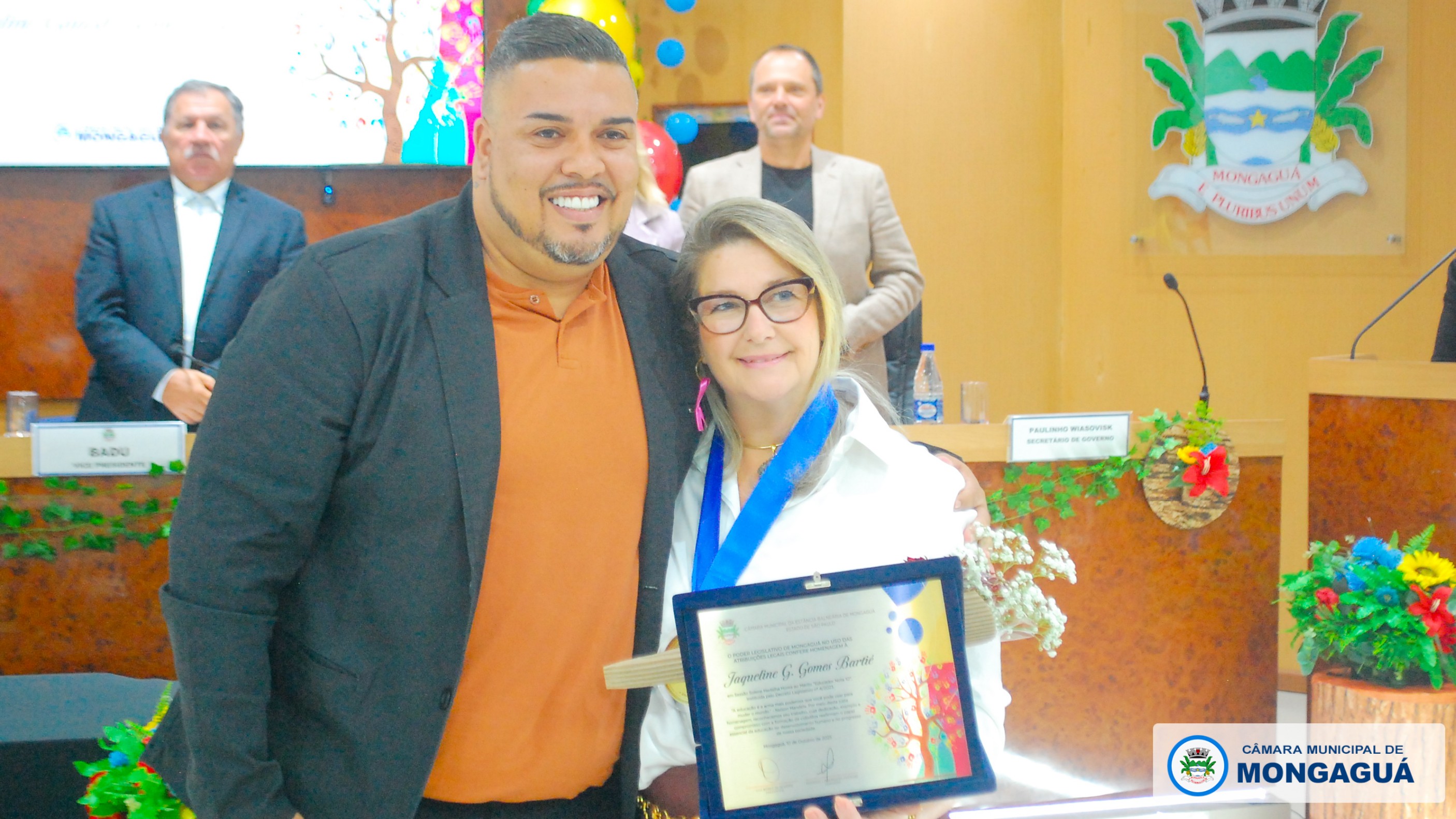 Durante a solenidade, vereadores homenagearam educadores que, com dedicação e compromisso, contribuem de forma exemplar para o desenvolvimento do ensino em Mongaguá. Cada parlamentar indicou um profissional, reconhecendo publicamente sua trajetória e contribuição à comunidade escolar.